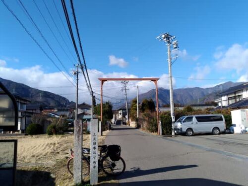 正月行事、孫対応も終わり、ようやく走り初めに出かけられる。今日1/6㈯は数mの南風が吹く予報だが、正月第一週に建てられた「おんべ」=飾り御柱を見る最後のチャンス、帰りの逆風に備えて、電アシのグレートジャーニー改で波田へ向かう。ここ数年見ること…